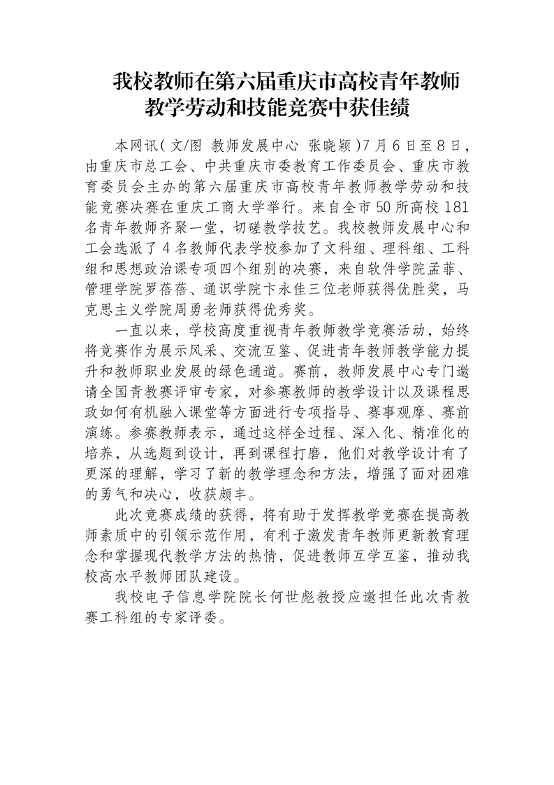 我校教师在第六届重庆市高校青年教师教学劳动和技能竞赛中获佳绩