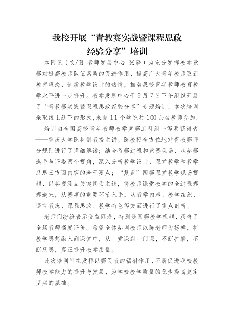 我校开展“青教赛实战暨课程思政 经验分享”培训