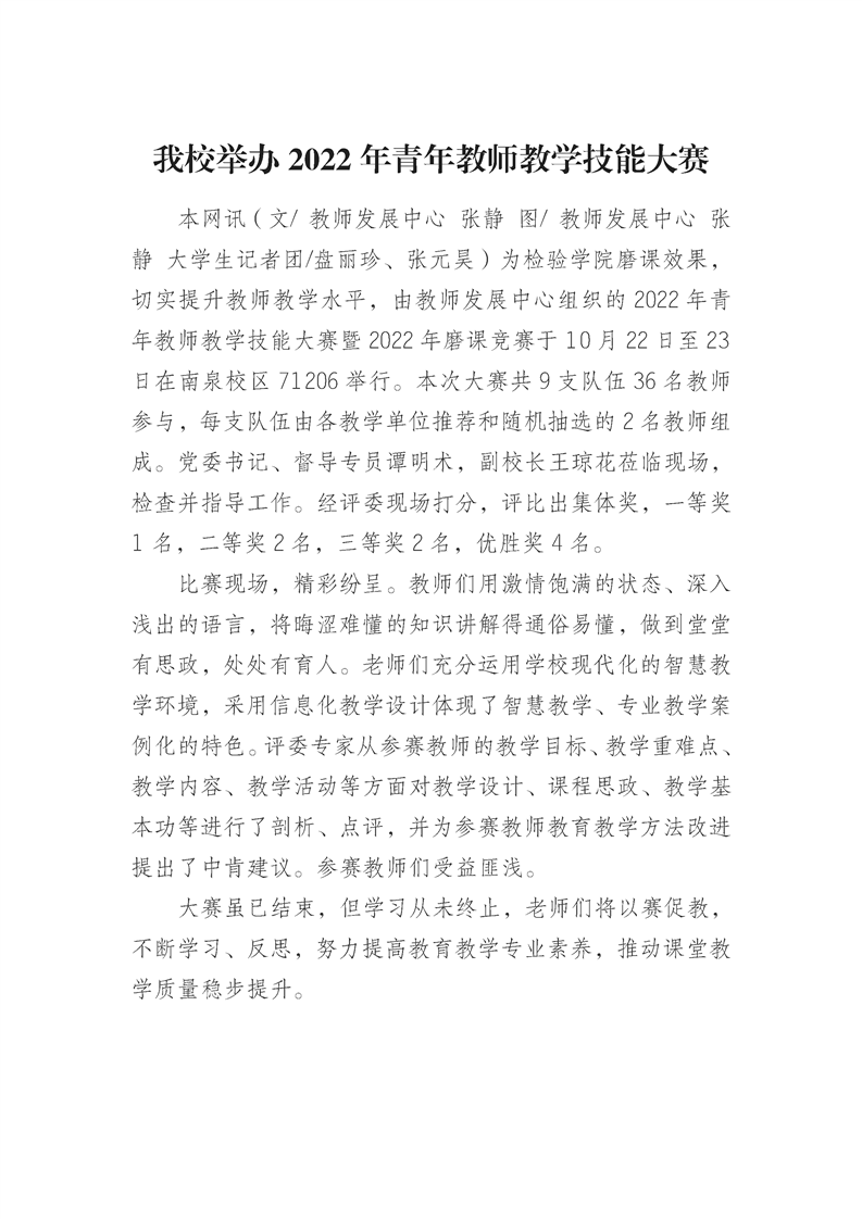 我校举办2022年青年教师教学技能大赛