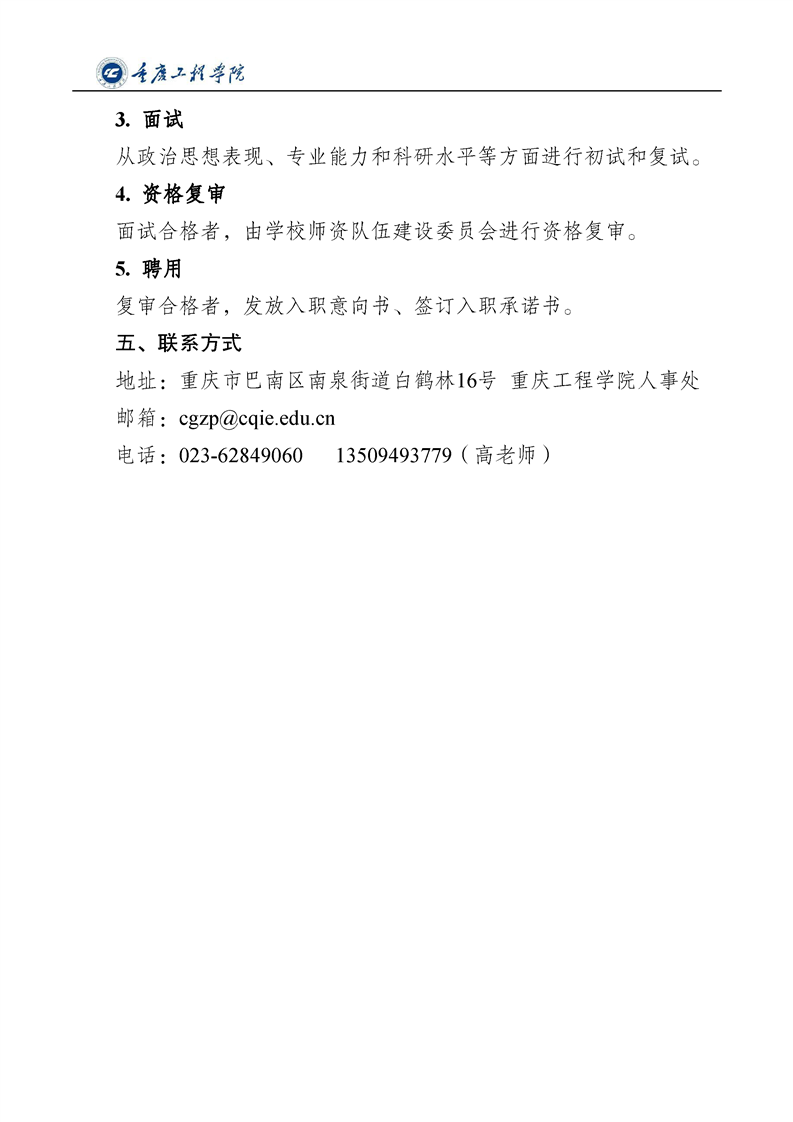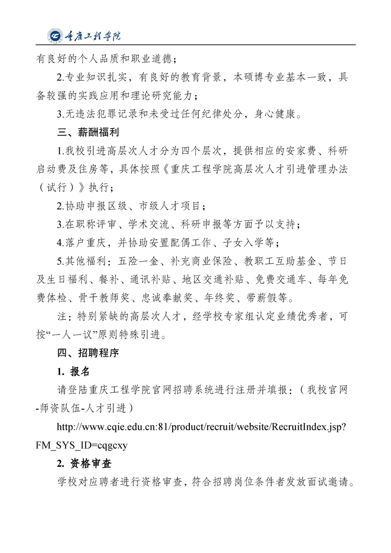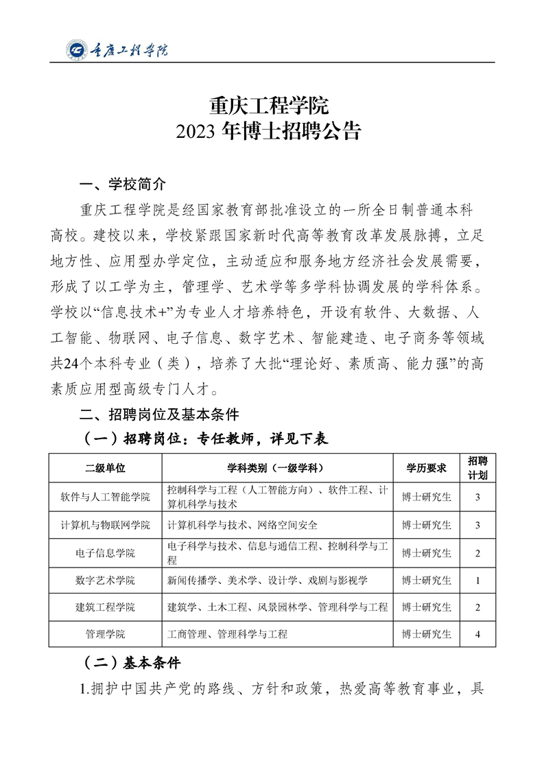重庆工程学院2023年博士招聘公告