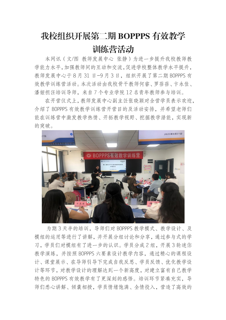 我校组织开展第二期BOPPPS有效教学训练营活动