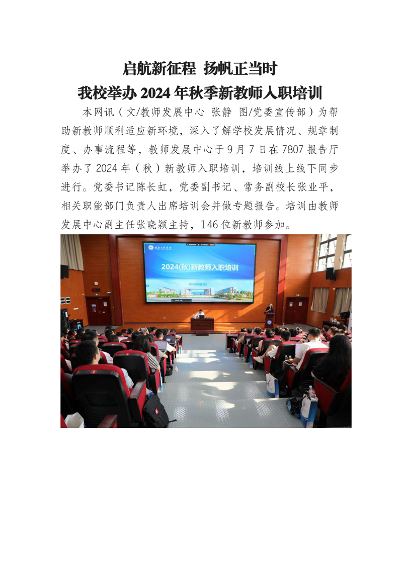 启航新征程 扬帆正当时 我校举办2024年秋季新教师入职培训