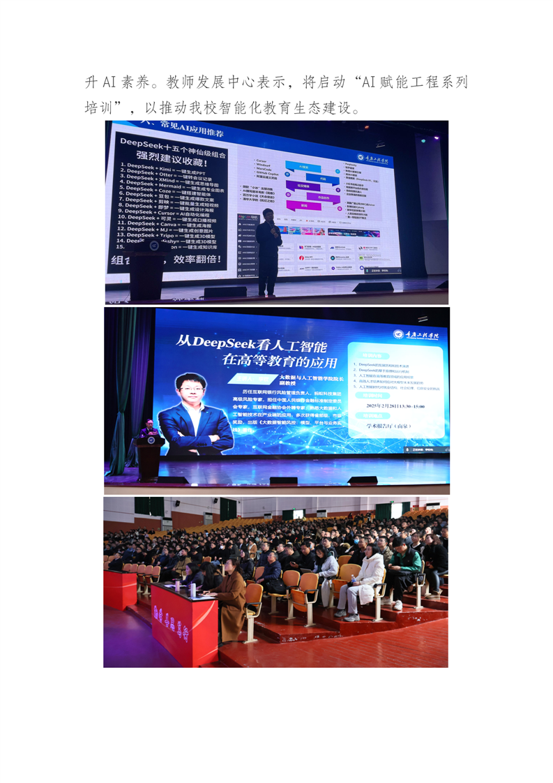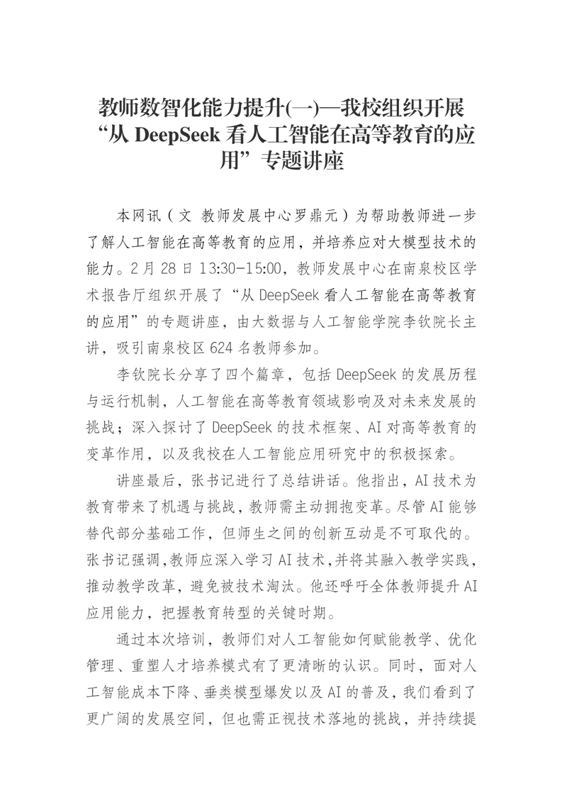 教师数智化能力提升一—我校组织开展“从DeepSeek看人工智能在高等教育的应用”专题讲座