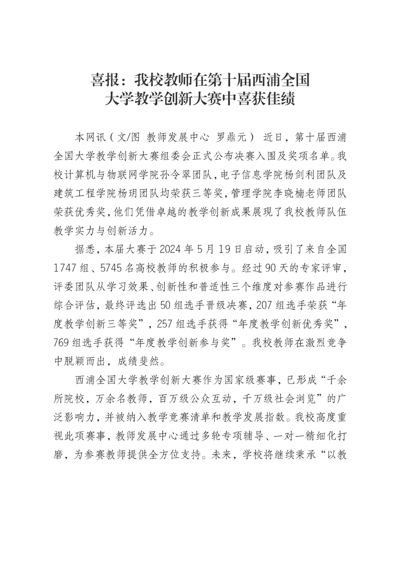 喜报:我校教师在第十届西浦全国大学教学创新大赛中喜获佳绩