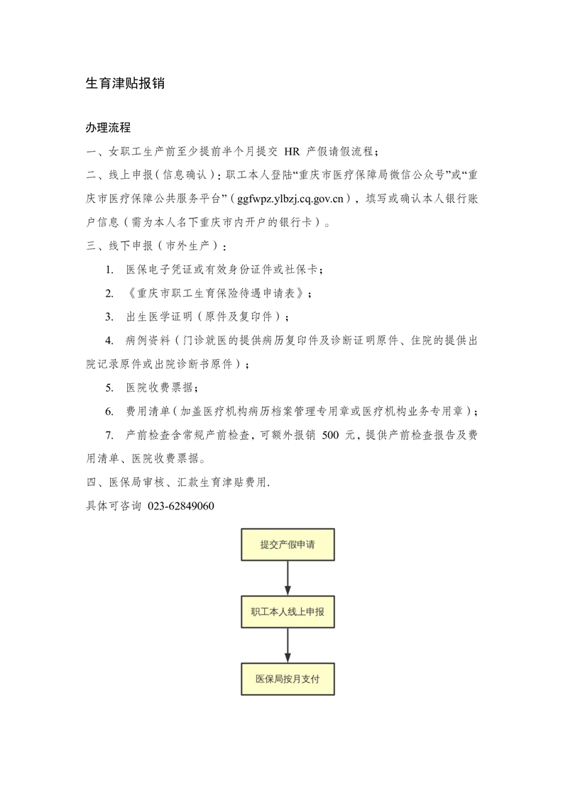 生育津贴报销流程图