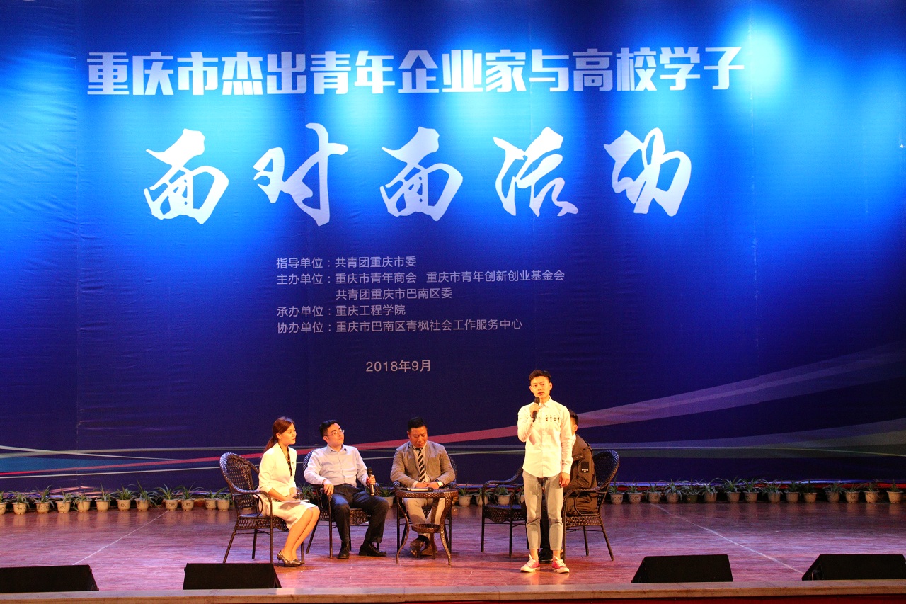 “重庆市杰出青年企业家与高校学子面对面”作为共青团重庆市委促进青年创新创业工作一项品牌活动,目的是为积极弘扬渝商精神,搭建重庆优秀青年企业家与高校学子面对面交流的平台,让青年企业家们通过分享自身创业经历、传递宝贵经验,引导青年大学生树立创新创业意识,正视创业、理智创业。“重庆市杰出青年企业家”评选是经市委、市政府批准设立的全市性社会组织评比达标表彰常设项目,由重庆市青年商会组织实施。此次“面对面”活动邀请的嘉宾,即是今年9月获评“2017年度重庆市十大杰出青年企业家”的其中两位。