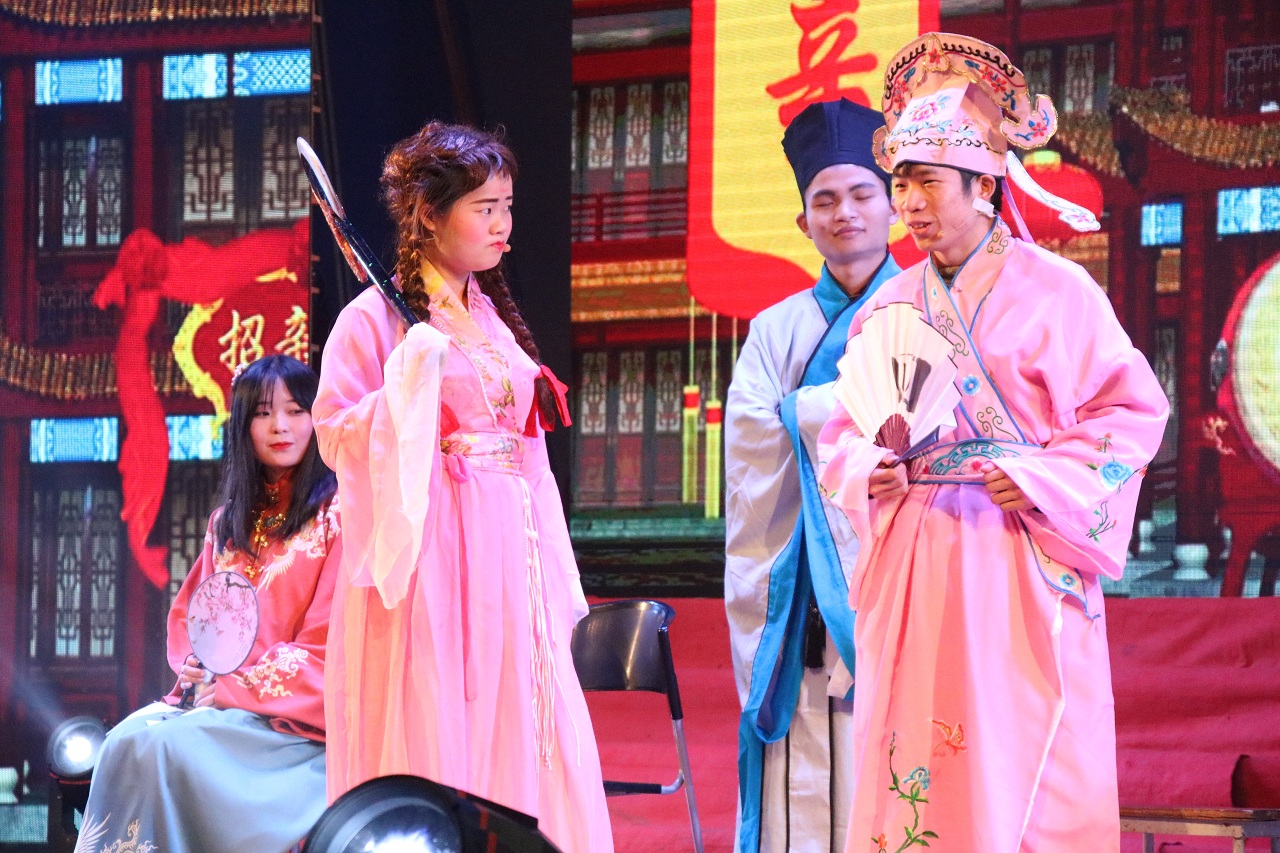 伴随着学校党委书记张业平副教授的新春贺辞,此次新年晚年拉开了序幕。整场晚会流行与古典并重,既有温柔的中国风舞蹈《喜鹊迎春》,也有粗狂的草原之舞《情系草原》;有古风的歌曲串烧《烟雨序》,也有走在潮流前沿的原创Rap《重工青年说》;温情与火热兼行,《四大才子》、《武林问道》、《精英连》等节目一次次把晚会气氛推向高潮,赢得了观众们的喝彩与掌声。