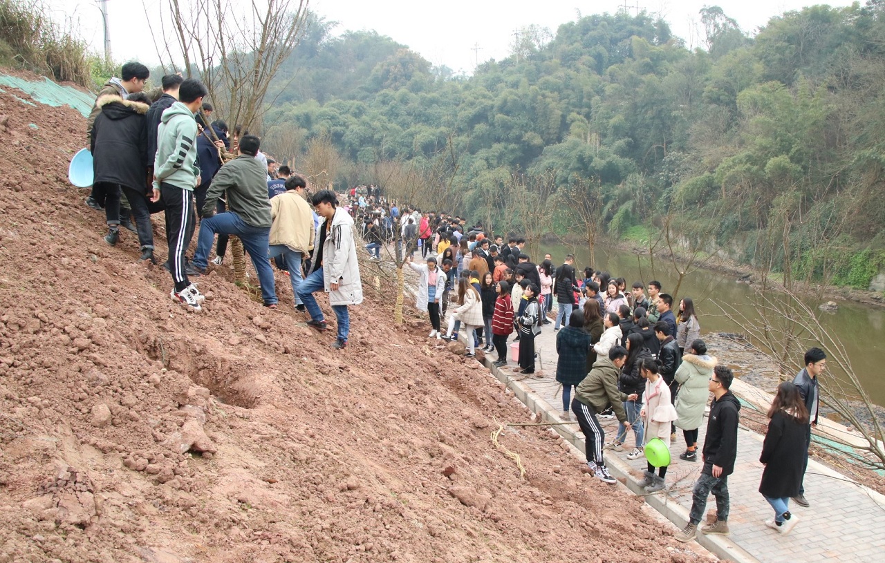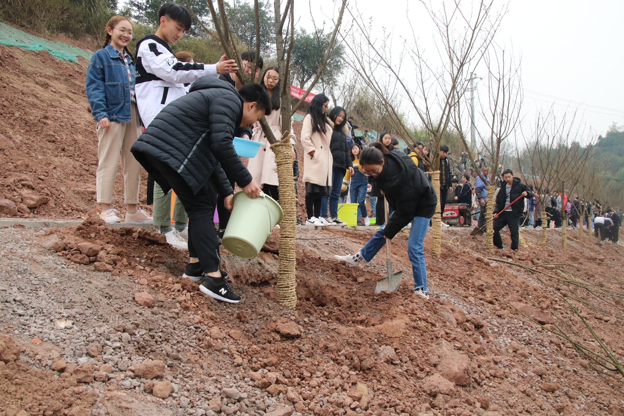 本网讯(校学生会宣传部 文/翟辉银 图/周广) 春天渐到,万物复苏,新一年的植树节又悄然而至,为增强大学生的环保意识、生态意识,美化校园环境。重庆工程学院2019年植树活动于3月13日下午14:00在校内花溪河在建樱花大道顺利举行。