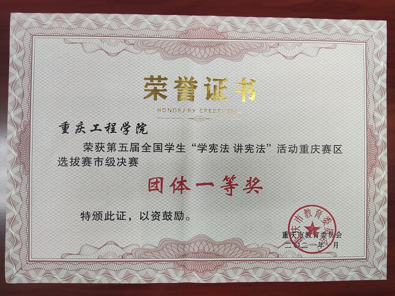 重庆工程学院荣获第五届全国学生“学宪法、讲宪法”活动重庆赛区选拔赛市级决赛团体一等奖
