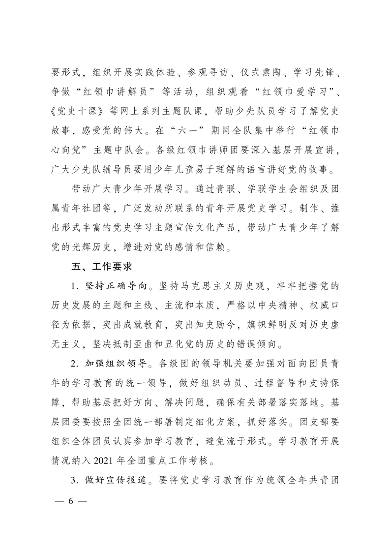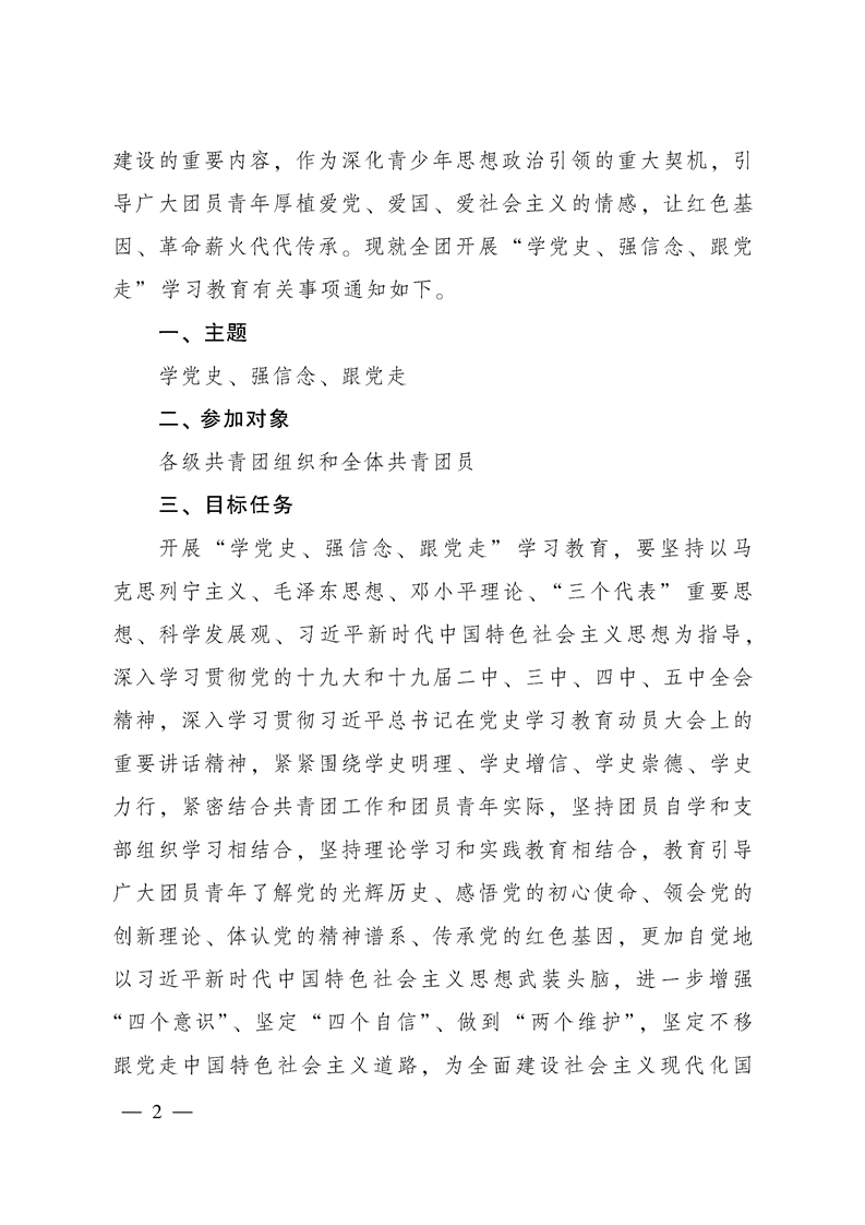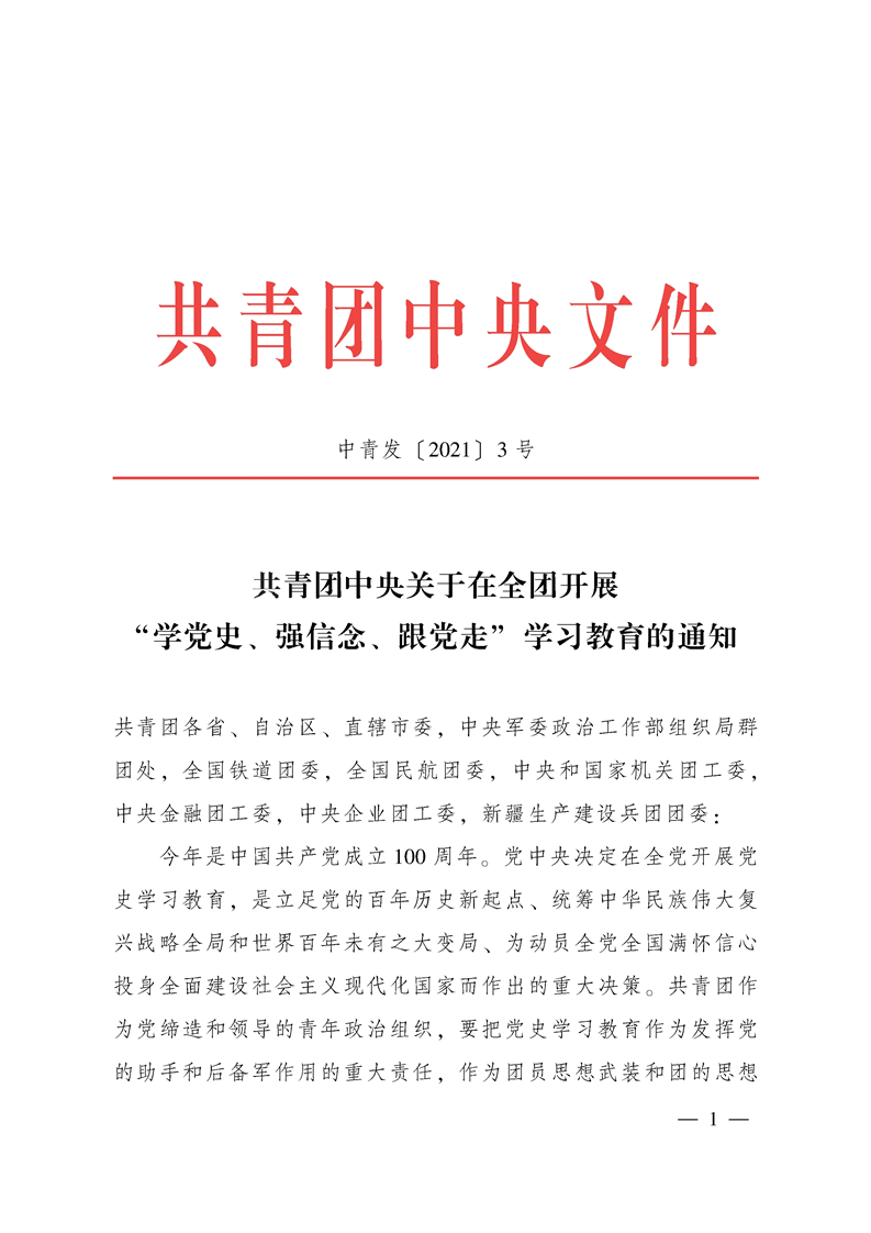 共青团中央关于在全团开展“学党史、强信念、跟党走”学习教育的通知