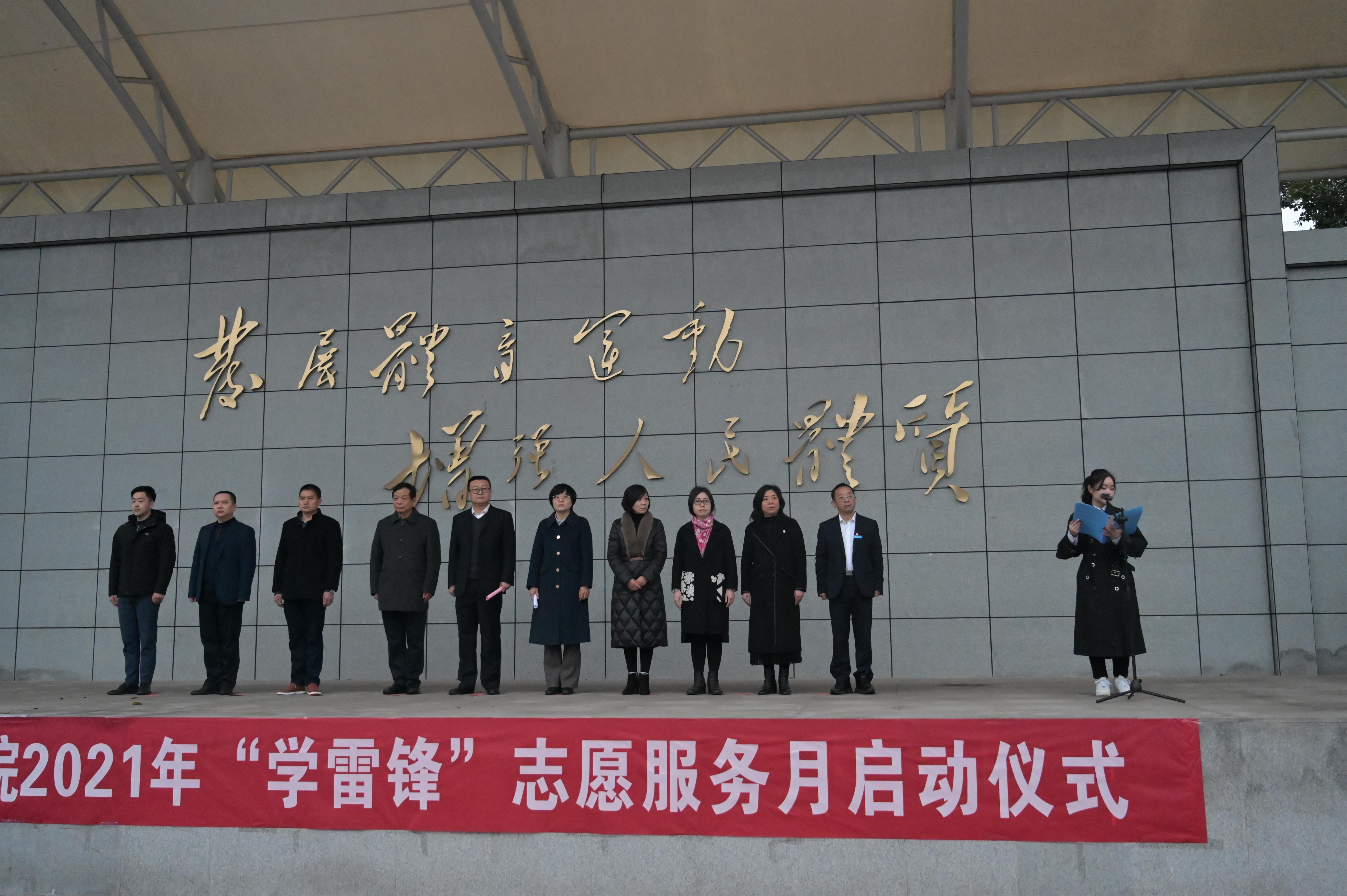 同时,我校2021年“学雷锋”志愿服务月也在今天正式启动,党委学工部部长黄燕解读实施方案,2019级学生许世均、2020级学生陈倩分别代表学生会在两校区向全体同学发出“向雷锋同志学习”的倡议,校长助理王建东、双桥校区党总支副书记孙建分别为志愿者团队授旗。