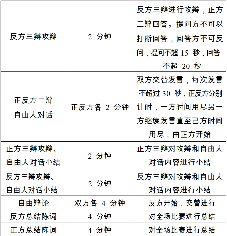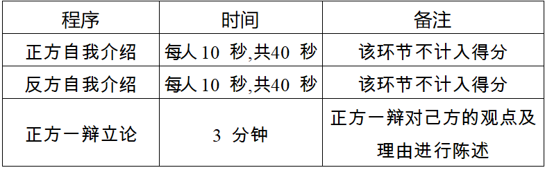 1、各辩手仔细阅读本次辩论赛决赛流程,熟悉有关赛程安排;