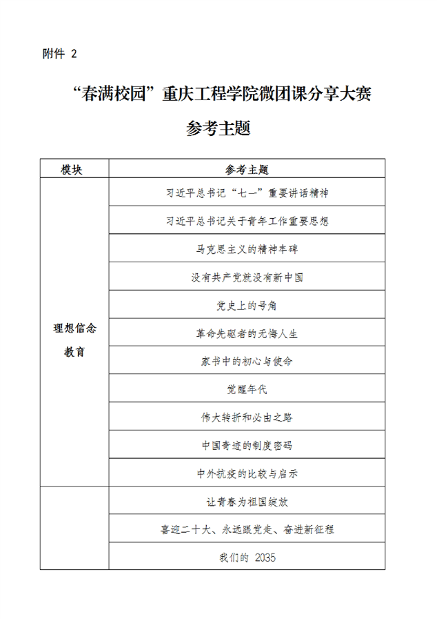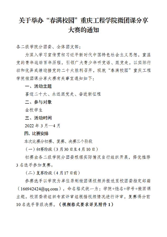 关于举办“春满校园”重庆工程学院微团课分享 大赛的通知