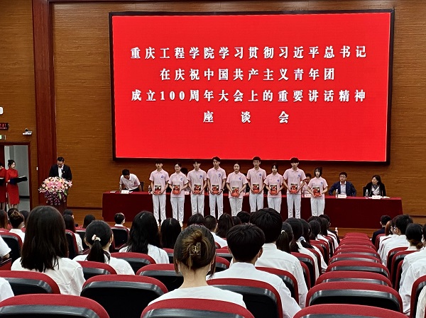 本网讯(文/图 校团委 金质纯)为深入学习贯彻习近平总书记在庆祝中国共产主义青年团成立100周年大会上的重要讲话精神,5月18-19日,学校在第七教学楼报告厅、双桥校区报告厅举行重庆工程学院学习贯彻习近平总书记在庆祝中国共产主义青年团成立100周年大会上的重要讲话精神座谈会。党委书记谭明术、党委副书记兼常务副校长张业平、党委副书记唐小勇、副校长王建东出席会议,各二级学院党总支书记、分团委书记以及团员青年代表等参加会议。