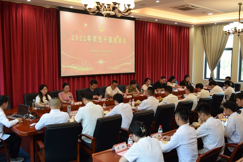 本网讯(文/图 校团委 金质纯)新时代呼唤新担当,新使命需要新作为。为不断增强广大重工学生骨干的责任感和使命感,继续发扬学生骨干在团学工作中的生力军作用,培养新时代优秀团员青年,7月8日下午,校团委在行政楼206会议室召开2022年学生干部座谈会,党委委员、副校长王建东,党委学生工作部部长黄燕,校团委书记黄涛、副书记陈军出席会议,团学组织主要师生代表共计30余人参与会议,座谈会由校团委艺术指导老师刘梦莹主持。