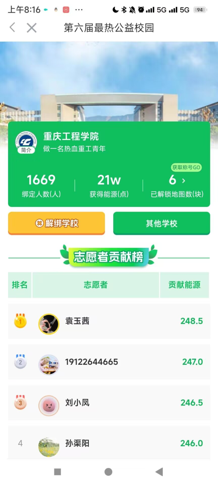 重庆工程学院青年志愿者协会于10月18日—11月30日开展“最热公益校园”志愿公益活动。在活动开展第二天,参与人数已达1600余人。