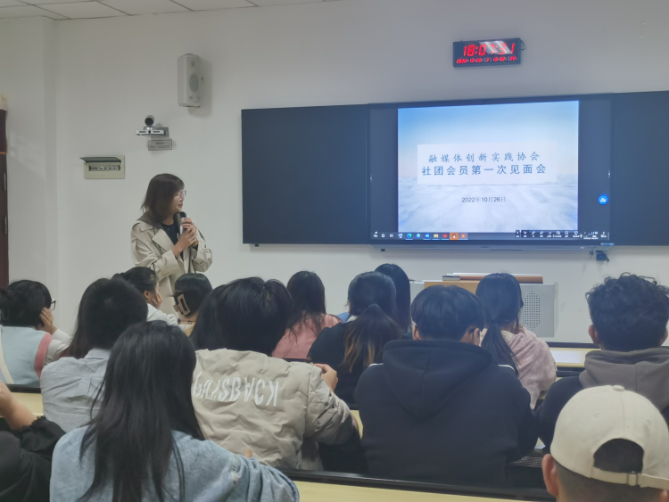 重庆工程学院融媒体创新实践协会第一次社团会员见面会,于2022年10月26日18:00-19:00在第六教学楼109举行,本次会议参与人数共四十人,联动南泉和双桥校区,采用线上线下结合方式。
