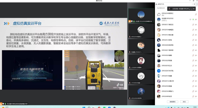 2022年11月1日19:50我校工程测量协会在腾讯会议上举行了本学期的学长分享虚拟仿真测绘竞赛座谈会。
