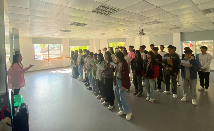 此次例训由安琪老师主持,分别演唱了歌曲“香樟情怀”与歌曲“在灿烂的阳光下”。在本次合唱训练中,大家都积极与老师配合,认真仔细听老师的唱法讲解和分析,在演唱过程时成员们声音嘹亮,将激情澎湃的情绪展现得淋漓尽致。在老师的指挥和带领下,大家能够快速整齐的将歌曲旋律掌握准确,完整的将两首歌曲演唱呈现出来。大家整齐划一、嘹亮的嗓音展现出大学生合唱团的风采。本次例训更是对第二次彩排前的锻炼与巩固。