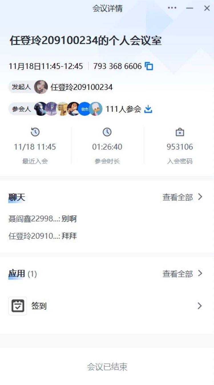 重庆工程学院网络工程技术交流社2022第一学年社团走进语言创新编程活动,由于疫情原因于2022年11月18日11.45-12.45于腾讯会议线上展开,本次活动主要针对全体网络工程技术交流社员(包括南泉校区与双桥校区的同学)。由社团负责人任登玲主持本次活动。本次活动参会人员实到111人。