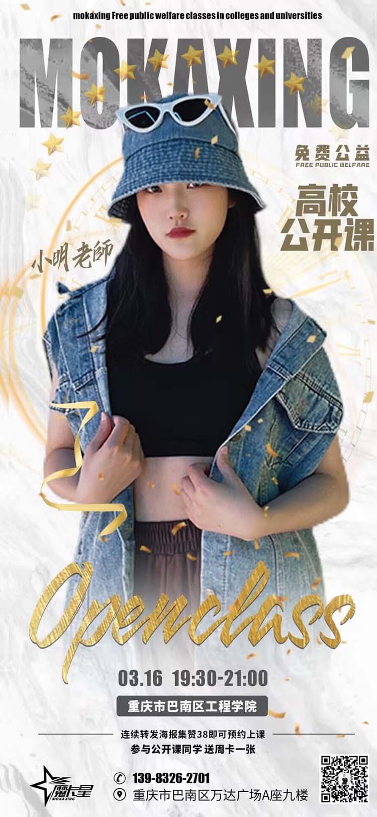 为了激发大家的舞蹈热情,调动大家的舞蹈积极性,鼓励同学们追求更好的生活,提高身体素质,重庆工程学院大学生艺术团舞蹈团特地邀请“摩卡星”舞蹈培训机构小明老师,于2023年3月16日在大学生服务中心404进行现场教学,本次活动共有12名同学。 本次的训练中,同学们积极投入,热情地参与此次公开课,提高了身体素质与舞蹈能力,特别是协调性舒展性和一致性,同时让同学们体会到了舞蹈投入的快乐和激情。
