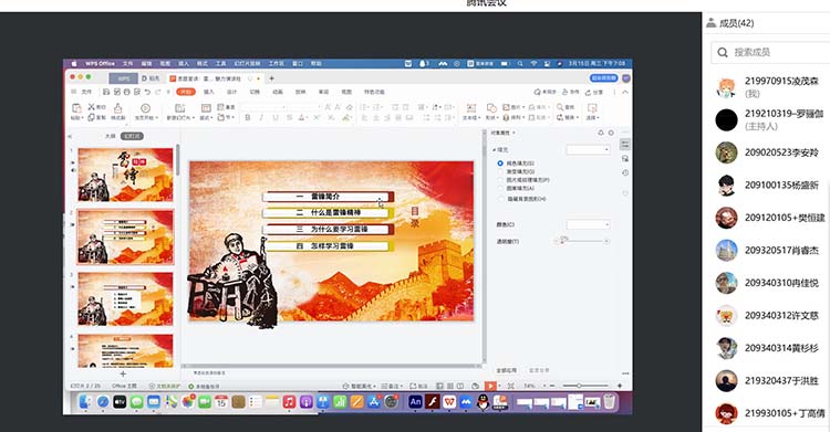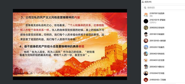 本次雷锋精神宣讲会一共44名社团成员参与。由罗骊伽进行本次雷锋精神的宣讲。
