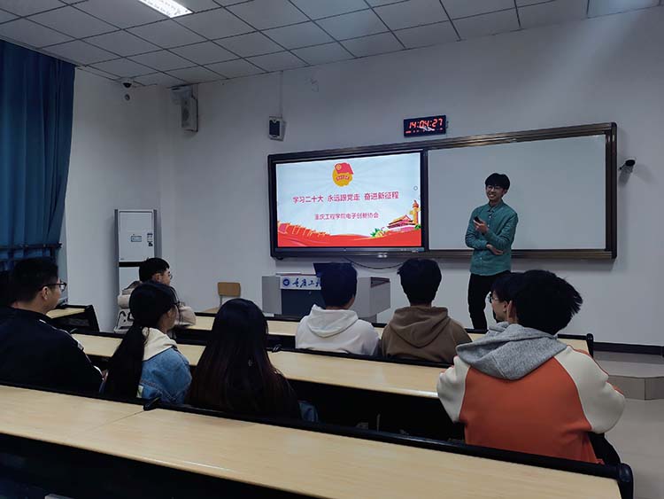 为加强社团会员精神文化建设,增加会员凝聚力,提高协会成员对于电子创新的认识。重庆工程学院电子创新协会于2023年3月17日14:00-14:30在六教103线下展开2022-2023学年第二学期第一次成员见面大会暨二十大学习活动。