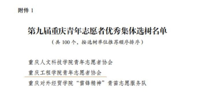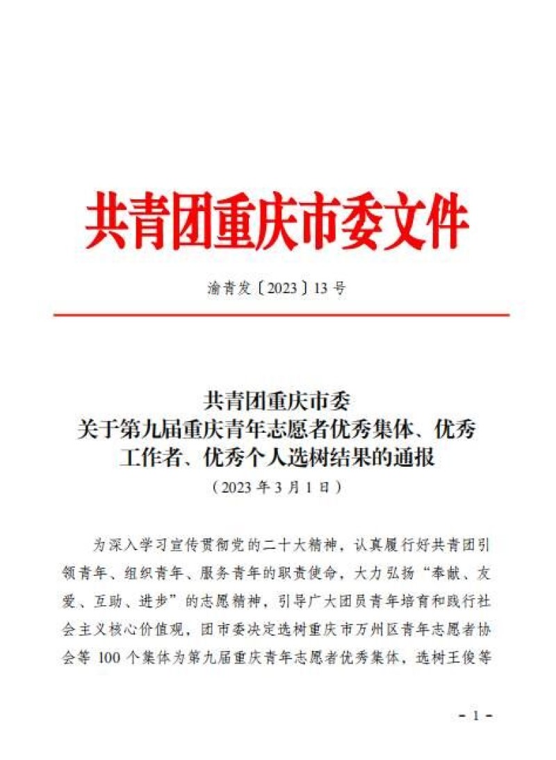 共青团重庆市委关于重庆青年志愿者优秀集体、优秀工作者、优秀个人选树结果的通报