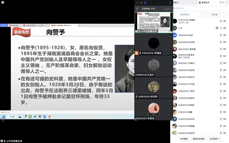 重庆工程学院魅力演讲社于2023年4月6日中午13:00—14:00发起“缅怀英烈祭忠魂·抚今追昔思奋进”活动。此次活动由罗骊伽、凌茂森和李英涛负责。本次“缅怀英烈祭忠魂·抚今追昔思奋进”活动一共54名社团成员参与。有幸邀请到了社团指导老师吴孝平老师进行学习内容的宣讲。学习内容分为两个部分:对英烈事迹、英烈精神的学习和对我校合格评估相关的学习,让同学们铭记自身使命,继承先烈意志,把对先烈们的缅怀融入学习和迎接合格评估的工作之中。