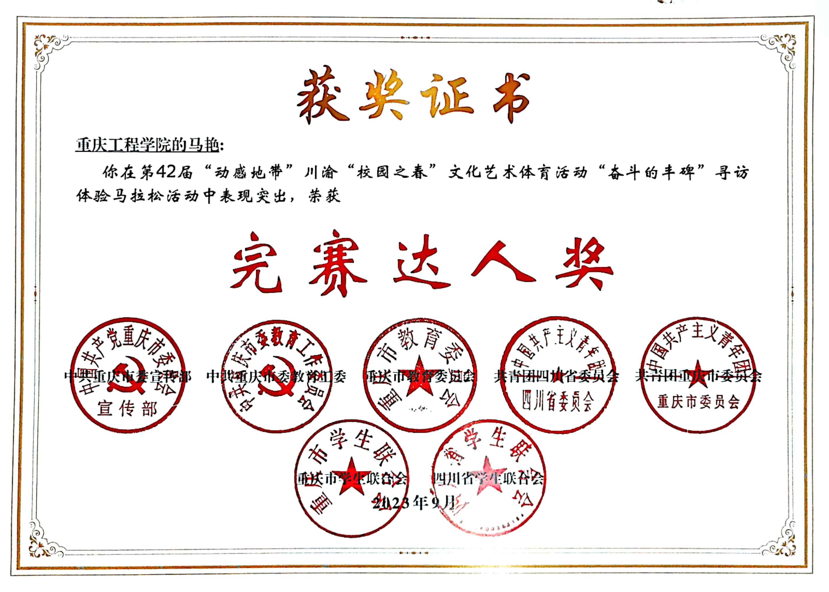 【喜报】我校在第42届“动感地带”川渝“校园之春”文化艺术体育活动中斩获佳绩8项!