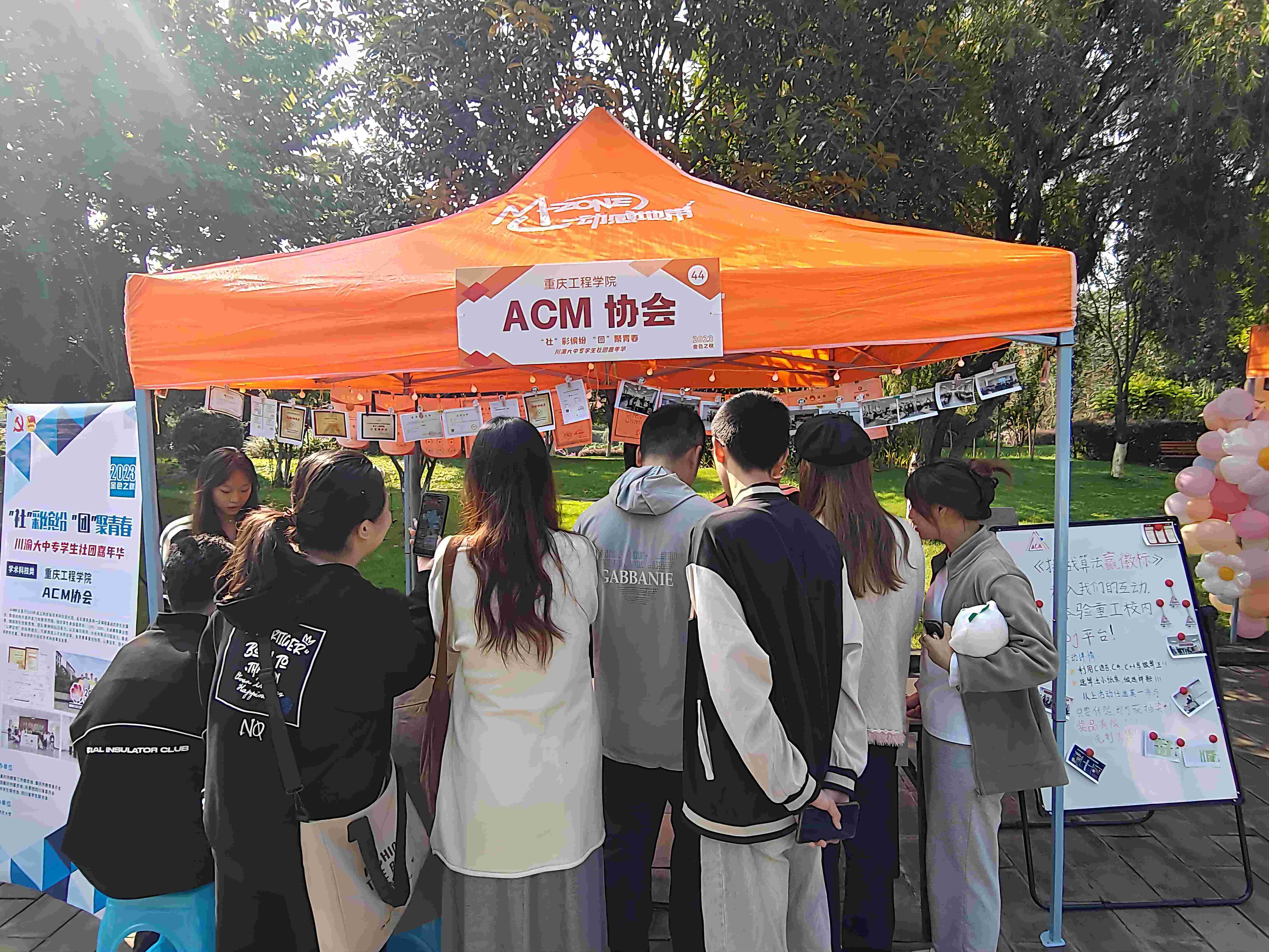 据悉,我校ACM协会成立于2020年,是软件学院指导的、以培养优秀的ACM创新人才为目的的学术科技型社团,刚刚入选2023年重庆市高校“一校一社一品”学生社团及项目品牌培育建设工作市级立项名单,成立三年来积极面向全校学生普及程序设计竞赛,特色活动有ICPC、CCPC、团体程序设计天梯赛、蓝桥杯大赛、重庆市ACM竞赛等。2022年蓝桥杯大赛获奖90余人次,同比提升4倍,天梯赛30人获奖,并代表学校首次参加ACM/ICPC竞赛, 4支队伍成功入围ICPC亚洲区域赛,从此进入顶尖赛道。2023年在第十四届年蓝桥杯赛中协助培训的软件学院获奖人数达56人,创造了我校在“蓝桥杯”软件类全国总决赛中获奖等级和获奖人次双突破。在十四届四川省大学生程序设计竞赛中获得顽强拼搏奖,实现我校在CCPC女生专场获奖零突破。此次参展中ACM协会展示了其在程序设计和编程技术方面的独特魅力,分享竞赛成就和经验,参展现场还设立了互动区域,提供算法答题和现场体验oj平台算法题,增加了活动的趣味性和互动性。