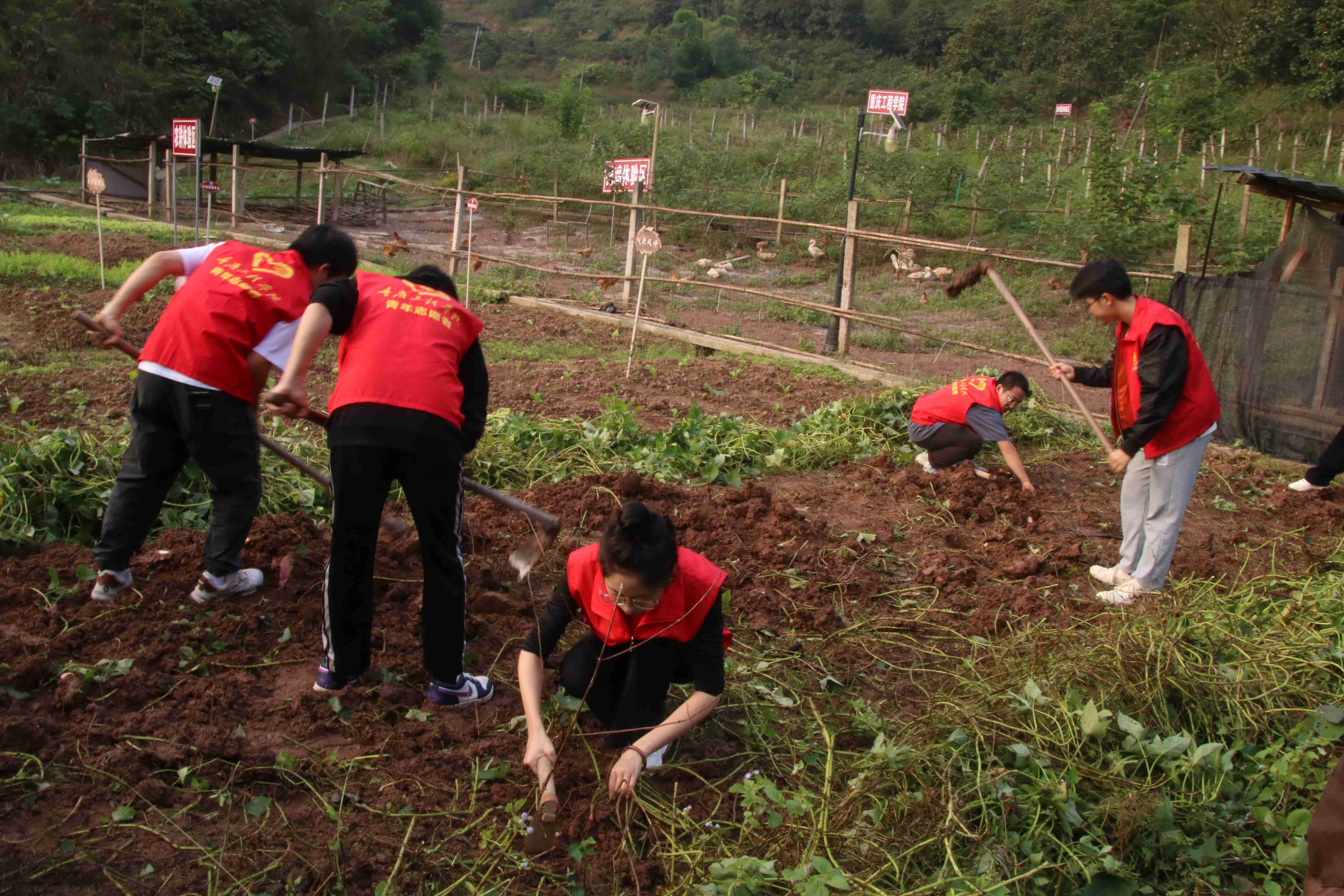 活动伊始,我们邀请了基地指导老师从红薯的一生、红薯的育苗技术、栽插技术、红薯大田阶段管理、收获与贮藏等几个方面向同学们展开讲解,让同学们更好地了解了红薯。随后,同学们纷纷撸起袖子、卷起裤腿,拿着镰刀、扛着锄头走进红薯地,有的负责割藤蔓,有的负责挖红薯,有的负责整理、装入背篼。从“课堂”走向“田间”,同学们在红薯地里挥汗如雨,感受田间劳动的辛勤和丰收的喜悦。