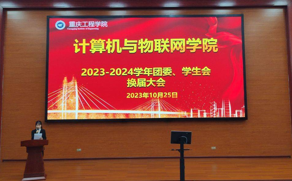 大会在庄重的共青团团歌中拉开帷幕。首先,三位领导、老师为第五届团委、学生会全体成员颁发了聘书,对他们过去一年的努力和贡献表示嘉奖和感谢。接着,学院党总支书记覃华伟宣读了《计算机与物联网学院2023-2024学年团委、学生会成员任命文件》,正式宣布第六届团委、学生会成员的名单。新一届团委、学生会成员庄重上台,领取了聘书,象征着他们将承担起团委、学生会的重任。接着在热烈的掌声中,第五届学生会主席团将团旗交接给第六届学生会主席团,寄托了对新一届学生会的期望与祝福。接着,主席团成员卢晓玲带领新一届团委学生会成员庄严宣誓,重申了服务同学、发展学生事业、为学院增光添彩的决心和责任。最后,党总支书记覃华伟做总结讲话,他对去年的工作做了肯定和总结,也对今年的工作提出了要求和期望,为大会画上圆满的句号。
