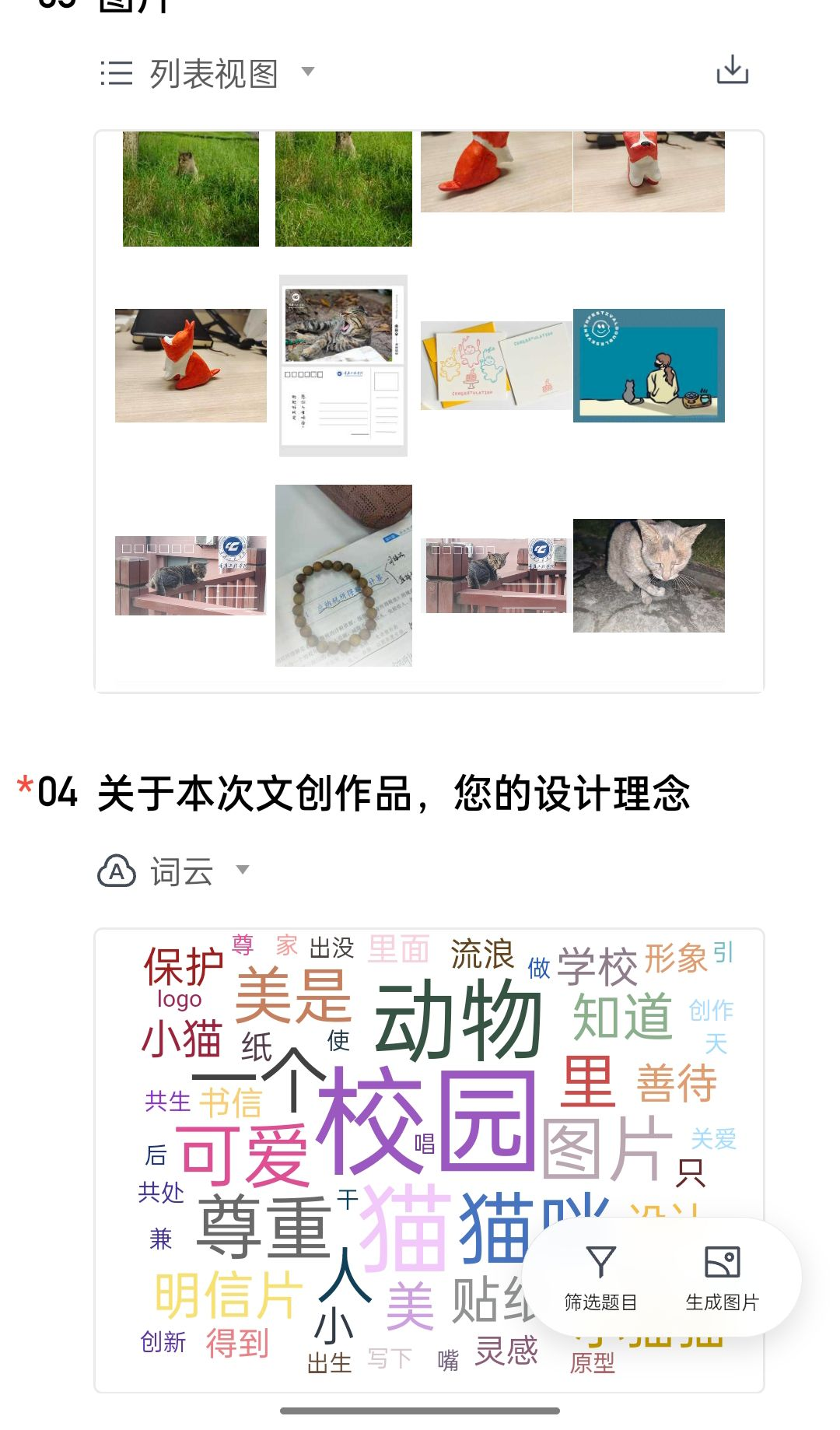 本次校园小动物文创产品征集活动取得了圆满成功。在活动期间,参与活动人数达350人次。活动收集到了大量校园内各类小动物的照片,并且吸引同学们参与了文创产品设计。活动不仅让学生们更加关注和热爱自然,也为校园文化创意发展注入了新的活力。