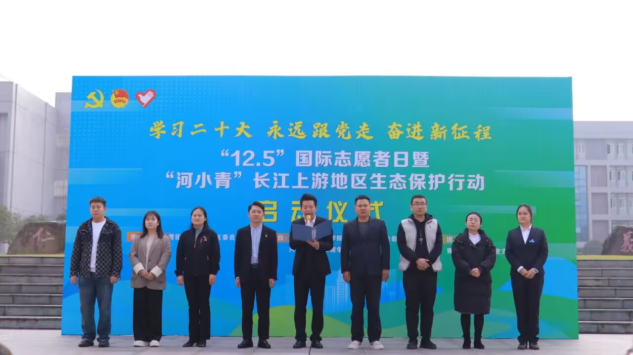 (本网讯 图/文 张俊)为深学笃用习近平生态文明思想,持续推进长江生态环境保护修复,筑牢长江上游重要生态屏障,积极引导广大青少年参与生态文明建设,践行“绿水青山就是金山银山”的理念。 2023 年12月 6 日下午,我校于图书馆二部广场前举行“12.5”国际志愿者日暨“河小青”长江上游地区生态保护行动启动仪式。校、院团组织负责人、青年志愿者代表500余人共同参与活动。