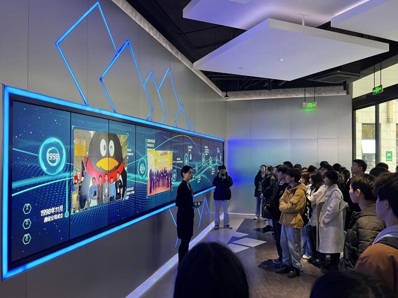 在本次活动在腾讯云实践基地举行,活动中,基地工作人员首先简要介绍了腾讯公司的发展历程、组织架构和发展趋势。随后,通过数据视图为同学们展示腾讯数据中心的发展情况,并讲解了腾讯云在旅游、政务、出行等方面的软件应用。最后介绍了AI板块的智能查病机器人、桌上冰球机器人、语言翻译和围棋机器人,展示了AI在当今时代多领域的广泛应用。