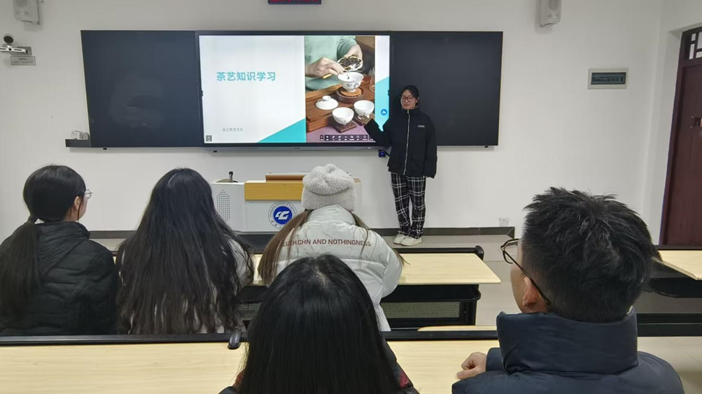 2023年12月18日19:00,茶艺社开展了茶艺知识学习。茶艺,是中国传统文化的重要组成部分,也是中华茶文化的瑰宝。它是以茶为媒,通过沏茶、赏茶、饮茶以增进友谊,美心修德,学习礼法,是很有益的一种仪式。喝茶能静心、静神,有助于陶冶情操、去除杂念,这与提倡“清静、恬淡”的东方哲学思想很合拍,也符合佛、道、儒“内省修行”的思想。茶艺精神是茶文化的核心,是茶文化的精髓。