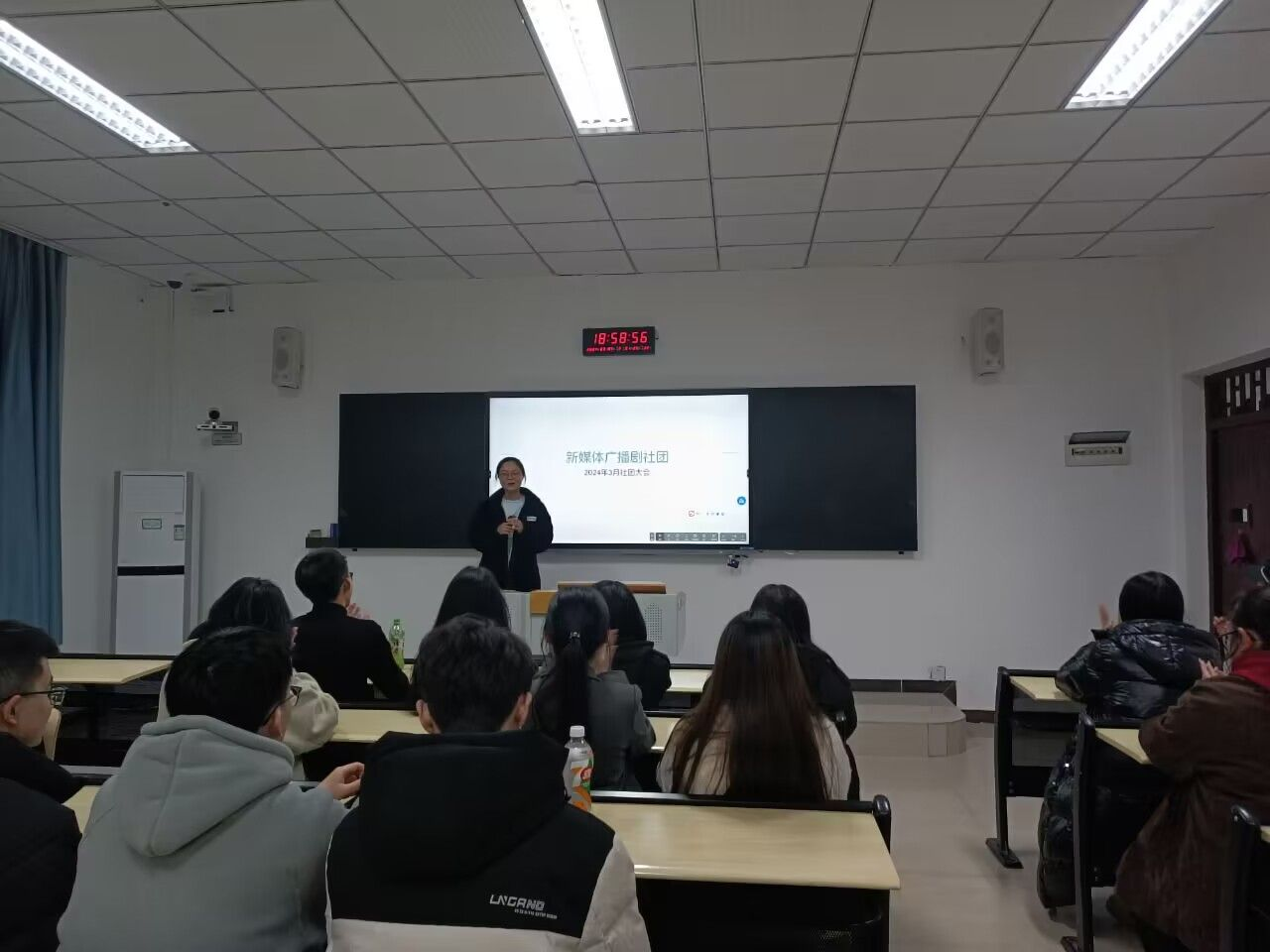 3月5日晚上7点,新媒体广播剧社团在南泉校区举办了本学期第一次活动“社团全体大会”。此次活动旨在了解新学期社团的发展方向和具体活动的展开,更为社团的同学们打造了交流平台,促进社员之间的关系。此次活动共有28位同学参与并且有指导老师参加,这也是一场与老师进行交流和了解社团的好机会。