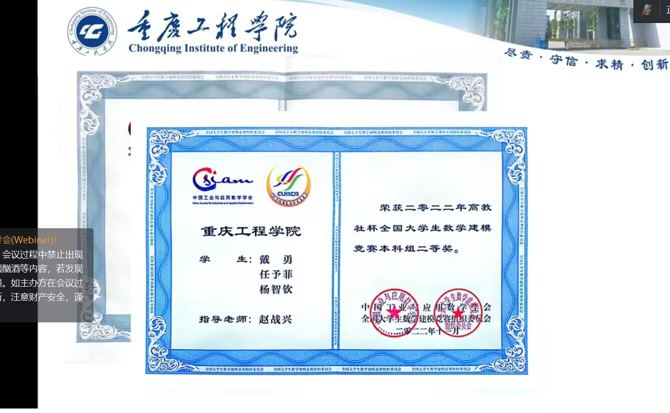 为了提高同学们对数学建模竞赛的认识,分享学习经验与参赛技巧,激发大家对数学建模的热情。数学建模俱乐部于2024年3月25日19:00-20;30成功举办了“数学建模学习经验与参赛技巧”线上活动,特邀指导老师赵战兴老师,为大家带来了一场关于全国大学生数学建模竞赛的精彩分享,本次活动共53人参与