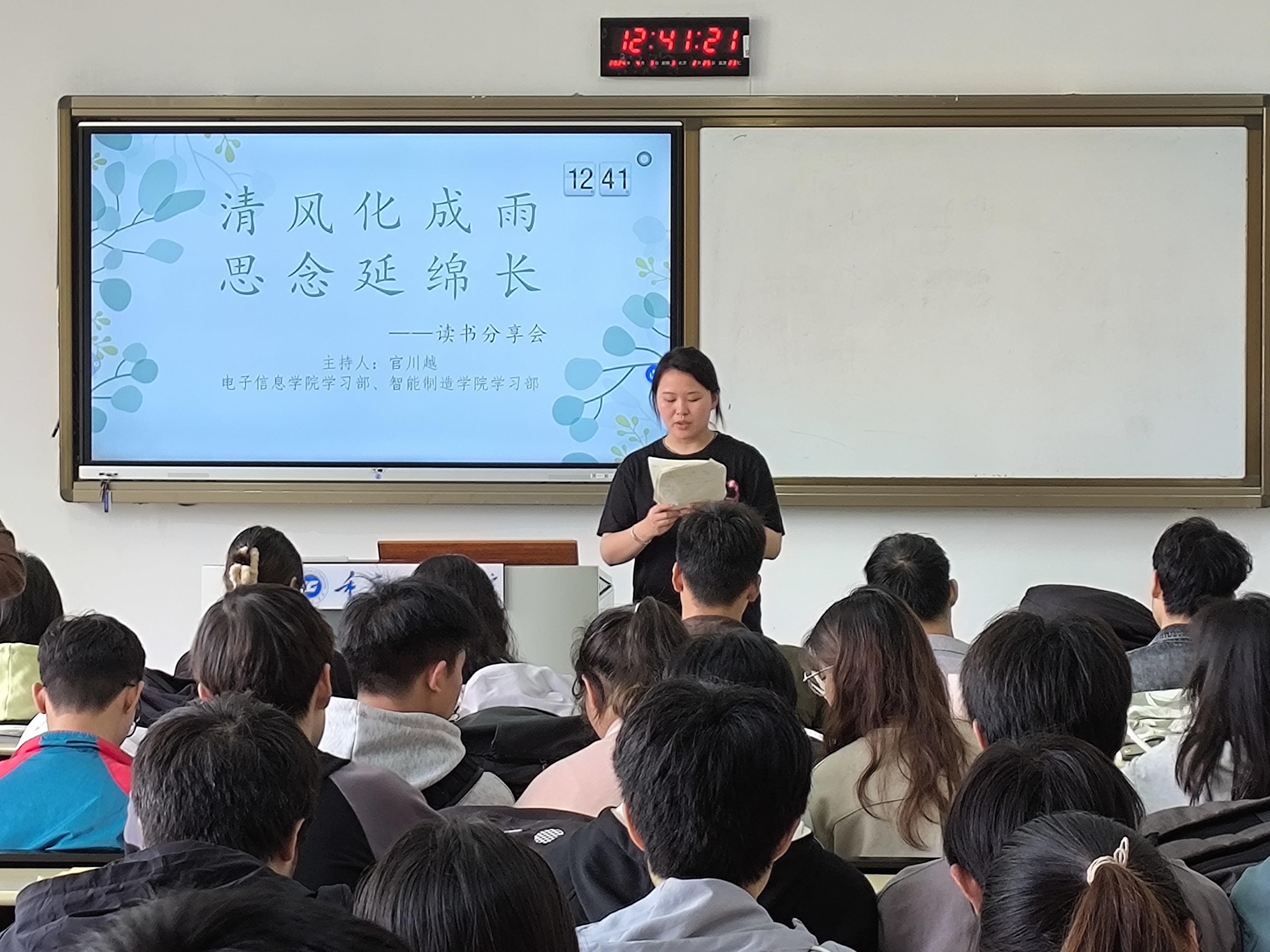 本网讯(文/李林 图/陈银)为了传播和普及关于清明节的历史知识、传统习俗和文化价值,让更多的人认识并了解这一传统节日的重要性。电子信息学院与智能制造学院学习部于2024年4月3日在6101与6102中午12:30—13点举办“清风化成雨,思念延绵长”读书分享会活动。