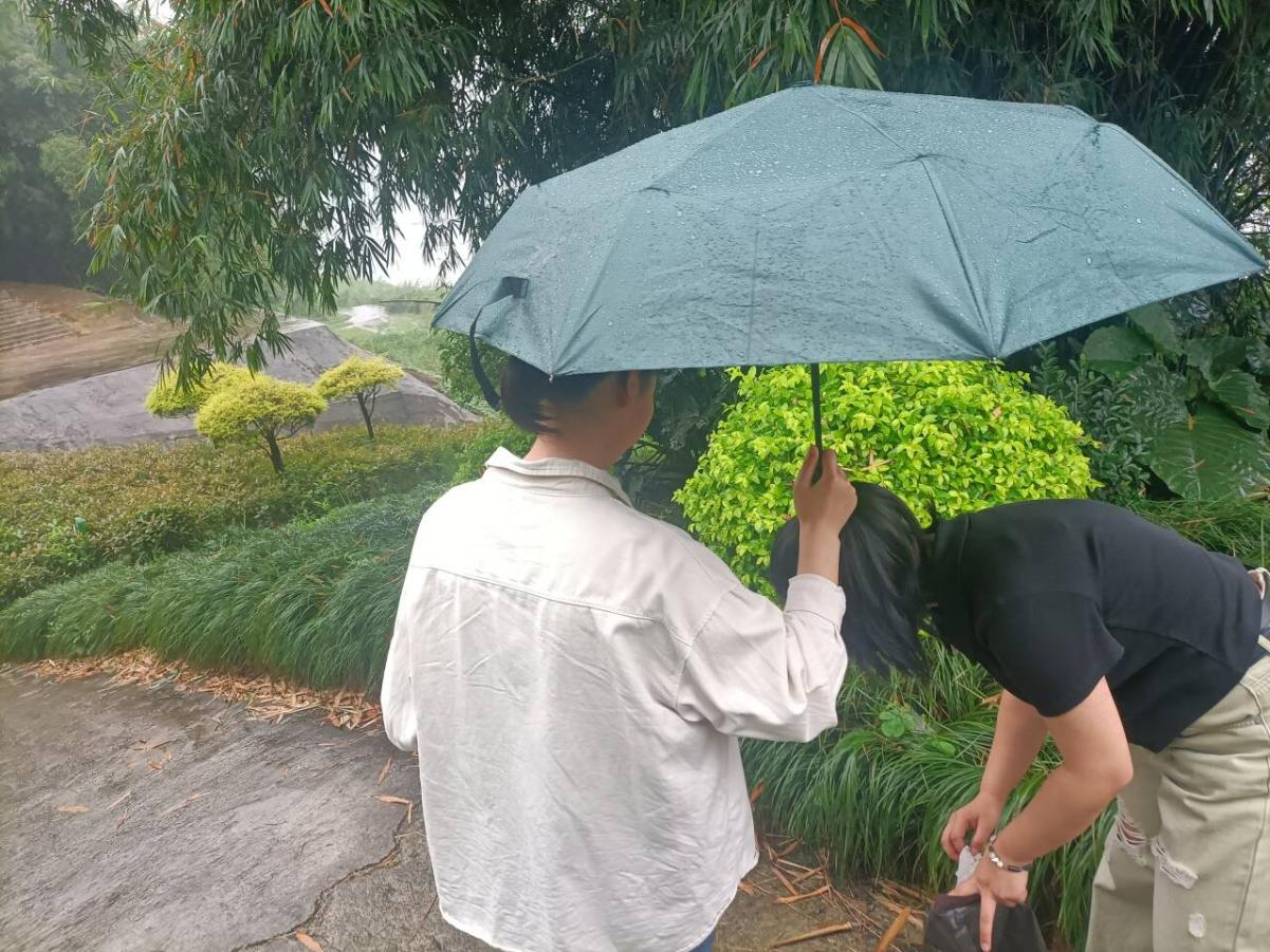 在前往目的地的路上,下起了大雨,但并未影响同学们对此次活动的热情。活动中同学们弯下腰,仔细捡起废弃的纸片、被乱丢的塑料瓶,用实际行动守护着我们的环境。同时,同学们还向过往的市民们积极宣传环保知识、倡导绿色生活,将“绿水金山就是金山银山”的理念贯彻到实践中。