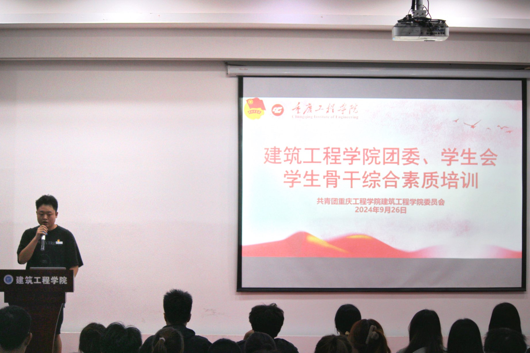 为进一步提升建筑工程学院第九届团委、学生会全体成员的专业技能和综合素质,强化学生干部队伍的建设。建筑工程学院于2024年9月26日19:00-20:20在建筑工程学院办公楼三楼多功能厅顺利举行了“学生骨干综合素质培训”大会。此次培训建筑工程学院团委、学生会所有成员参与。