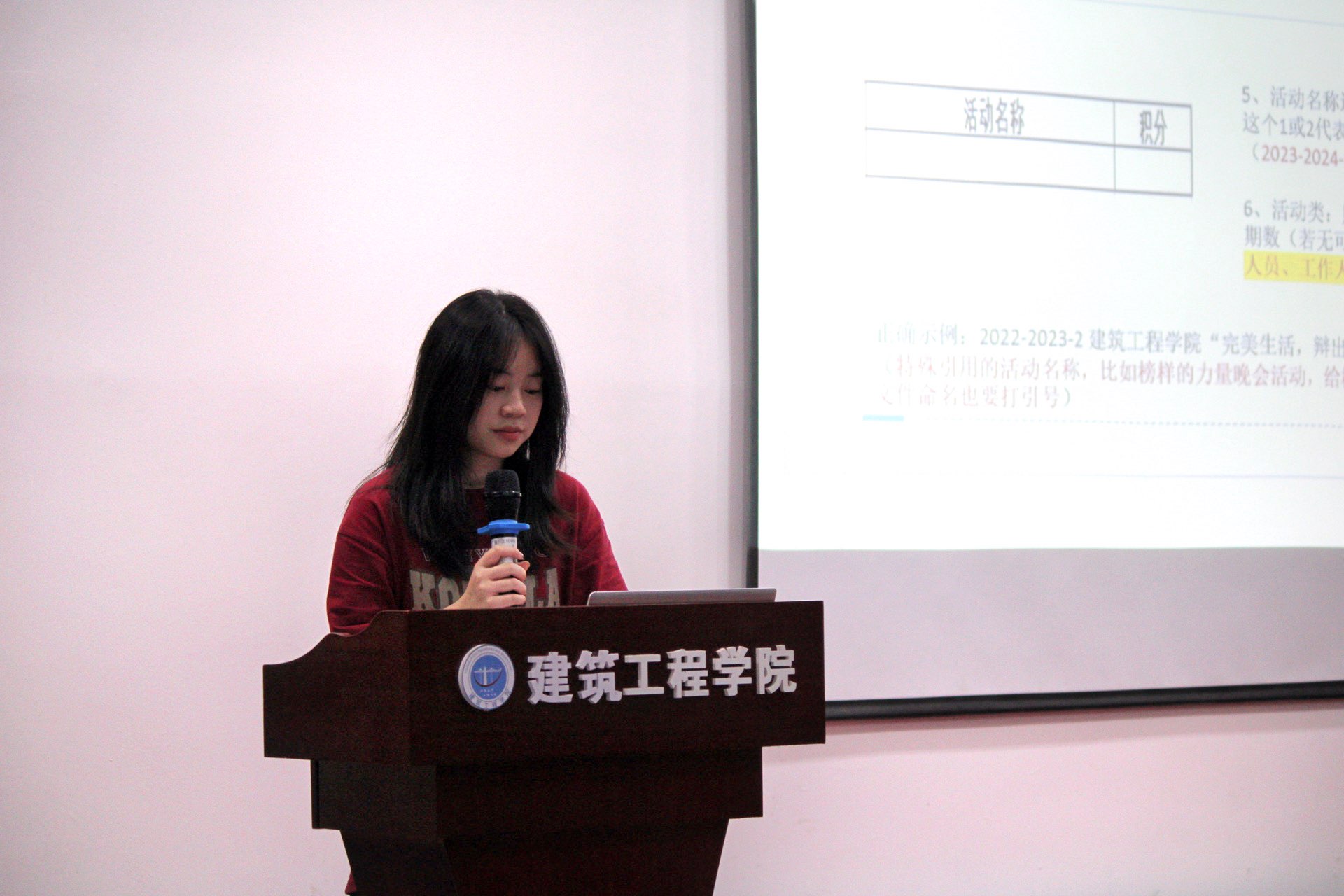 随后,她还细致入微地讲解了加分表的制作流程,为学生骨干们提供了宝贵的实操指南。会议尾声,由建筑工程学院团委、学生副书记周乐东旭作精彩总结,他鼓励大家将所学知识灵活运用到日常工作中,不断挑战自我,追求卓越,共同推动学院向着更加辉煌的明天迈进!