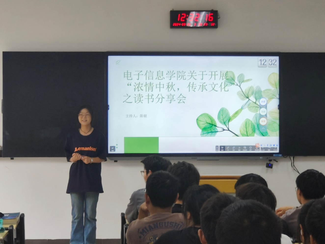 活动由学习部成员陈银主持。活动开始,陈银同学用简短而有力的开场白,为大家勾勒出了本次分享会的主题和宗旨。她的话语中充满了对中秋节敬意,为整个活动奠定了情感基调。紧接着,张一柳同学分享了中秋节的习俗。她的声音如同山涧中的清泉,潺潺流淌。她的朗读充满了感情,每一个字、每一个词都仿佛被赋予了生命,让在场的每一个人都感受到了中秋节对中国人民的敬意。在张一柳同学分享完毕后,现场爆发出热烈的掌声。紧接着,周绍青同学分享中秋节的来历。她告诉我们中秋节源于古代的“祭月”展开了她的叙述。在周绍青同学的叙述中,现场的氛围变得更加庄重。许多人都被她的分享所打动。最后,陈银同学对本次活动进行了总结。她感谢了所有参与者的热情参与和精彩分享,并希望大家能够弘扬中国传统文化,让文化走出中国。在热烈的掌声中,“浓情中秋,月满团圆”读书分享会圆满结束。