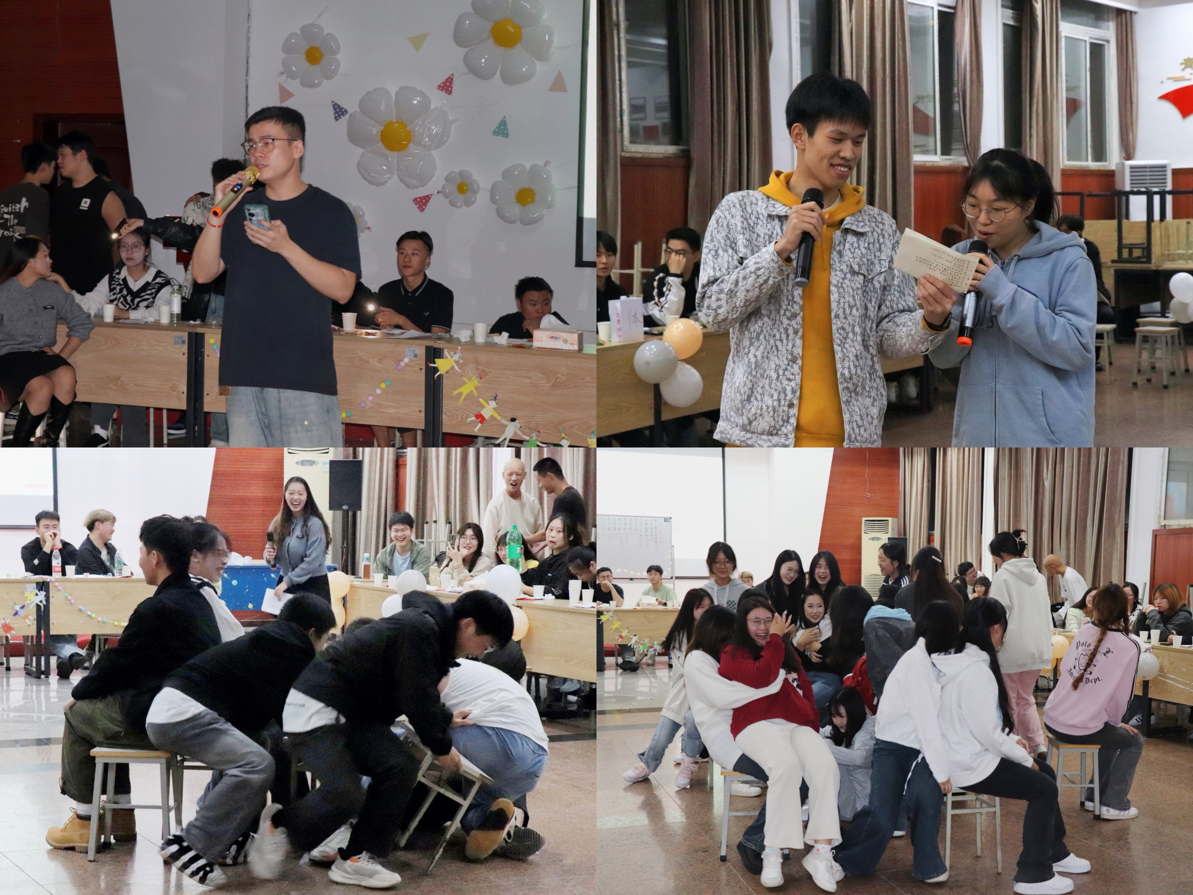 在"定时炸弹—自我介绍"环节,同学们快速破冰,加深了相互认识;"你演我猜"游戏则巧妙锻炼了团队配合;而抢凳子游戏的欢乐氛围更是进一步拉近了他们之间的距离。活动在同学们的才艺展现中进入尾声,掌声与欢笑交织在一起,凝聚成了活动中最为动人的一幕。活动的最后,建筑工程学院团委、学生会全体成员合影留念,共同记录这美好的一刻。