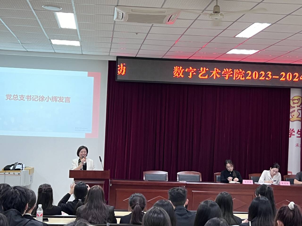 2024年10月16日14:30,数字艺术学院在6302举行“2023-2024学年表彰大会暨团委学生会、助理委员会换届仪式”。学院院长庄涛文、党总支书记徐小辉、分团委书记杨道珍、全体辅导员老师和团委学生会成员、助理委员会成员、晨课助教成员参加本次会议。