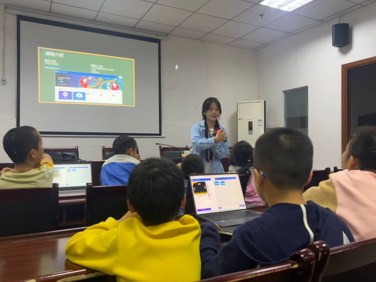 为促进青少年对科技前沿的了解,激发青少年对编程知识的兴趣,2024年10月19日下午14:30点,大数据与人工智能学院第二课堂实践部科普教育实践团前往重庆市巴南区李家沱街道青岩社区居委会开展make-bit机器人少儿编程科普教育实践活动。