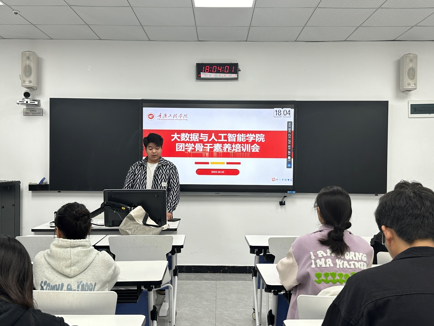 本网讯(文/图 大数据与人工智能学院 郭梁东 罗磊)2024年10月10日18:00,大数据与人工智能学院于7209开展了团学骨干素质培训会,全院团学相关部门负责人及骨干近40人共同参与。