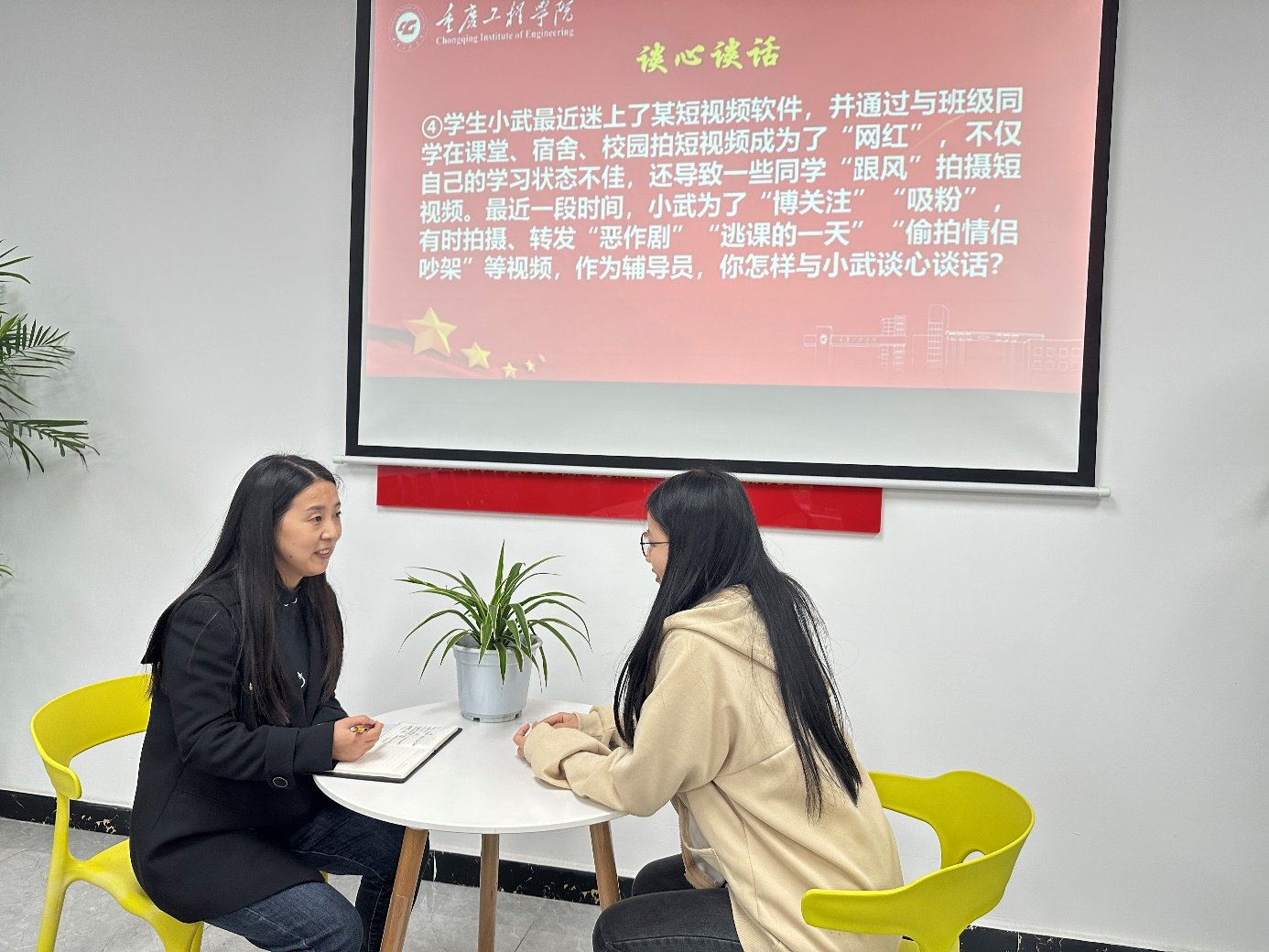 此次比赛内容包括基础知识测试、案例研讨、谈心谈话和主题班会说课四个环节。基础知识测试重点考察辅导员的理论素养和业务知识;案例研讨则考察辅导员分析问题和解决问题的能力;而在谈心谈话环节,以情景再现的方式和学生对话,考验了辅导员们的临场应对能力;最后的主题班会课说课以“礼敬师生”为主题进行现场说课。经过一个上午的激烈比拼,所有参赛辅导员均展现了高度的专业素养和敬业精神,赛出了风格、赛出了水平。