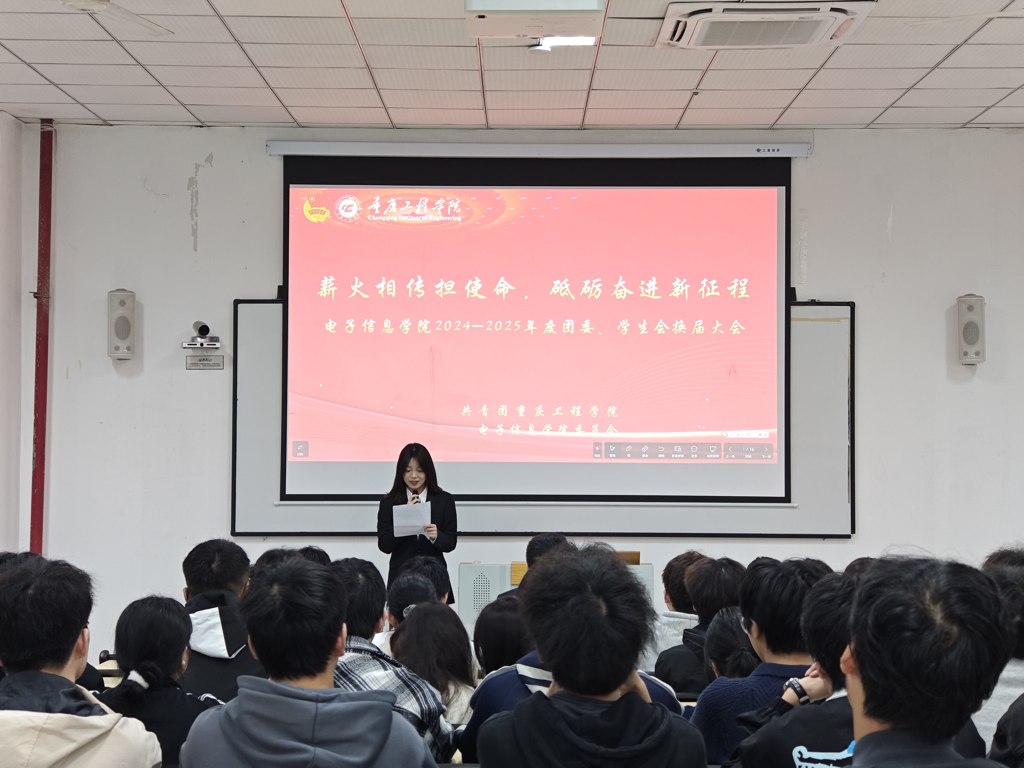 为调整充实院团委、学生会学生骨干队伍力量,充分发挥共青团组织的青年优势和组织优势,电子信息学院于11月13日下午在6201召开电子信息学院团委、学生会换届大会。由电子信息学院党总支书记谭思宇、电子信息学院分团委书记景晖祥、副书记孙美晨以及电子信息学院第六届、第七届团委学生会的同学共同参会。